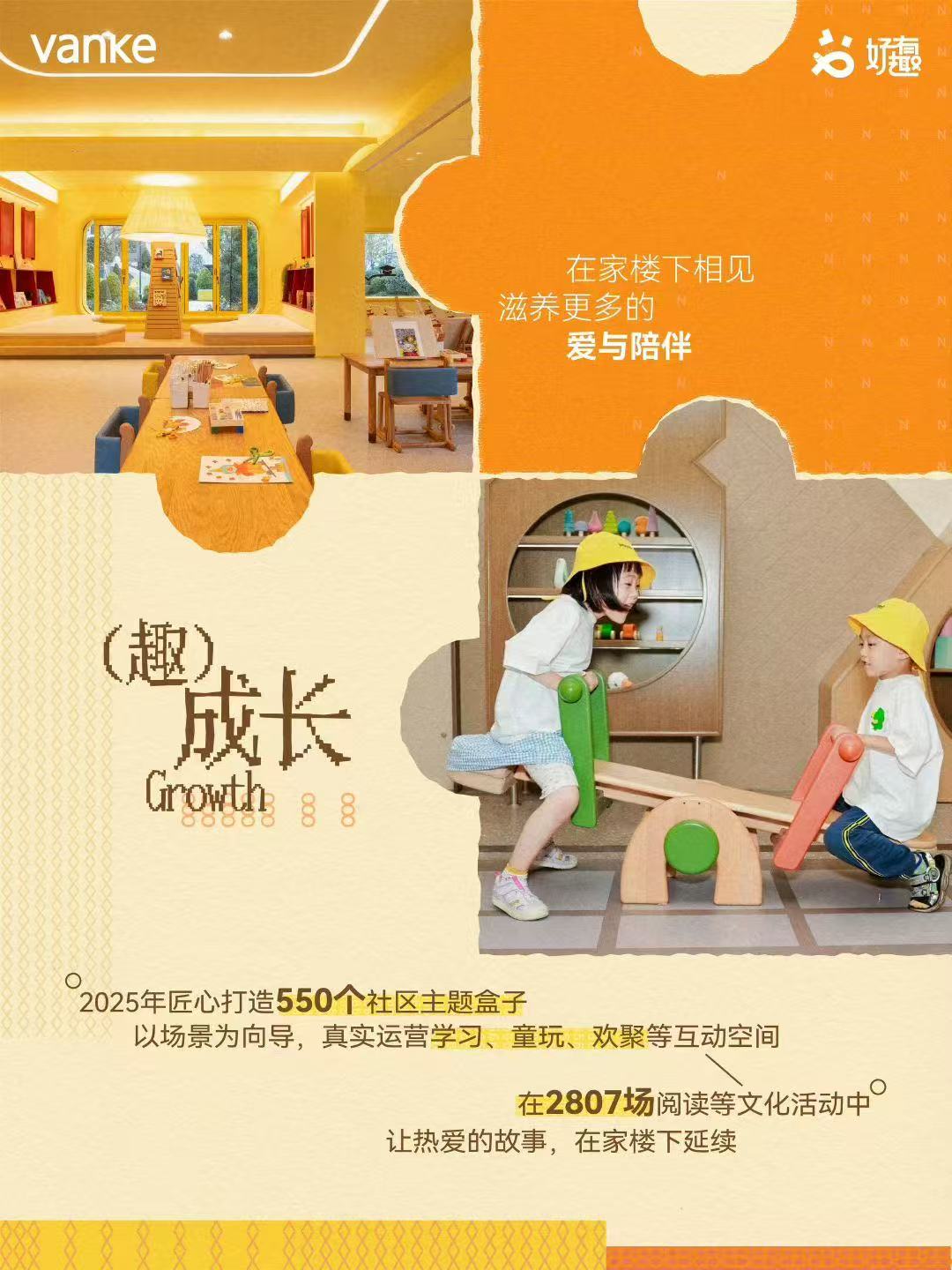 万科通过“社区主题盒子”模式,全年匠心打造了550个以场景为导向的互动空间,涵盖学习、童玩、欢聚等功能,并在这些空间开展了2807场阅读等文化活动,让热爱的故事在家楼下延续。